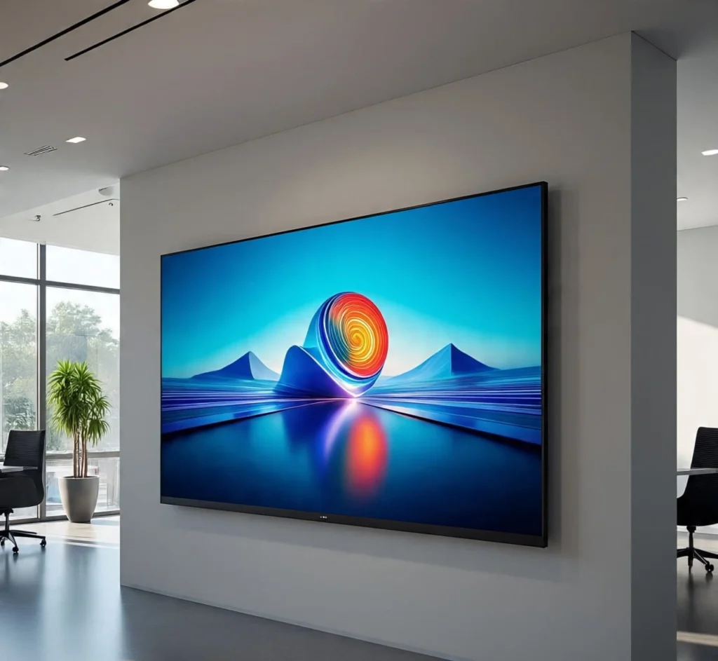 Corporate offices use different types of screens based on their needs. LED video walls are commonly installed in lobbies and large halls for branding and presentations. LCD and commercial-grade screens are used in meeting rooms, corridors, and work areas. Interactive touch screens are used for directories, visitor management, and wayfinding.