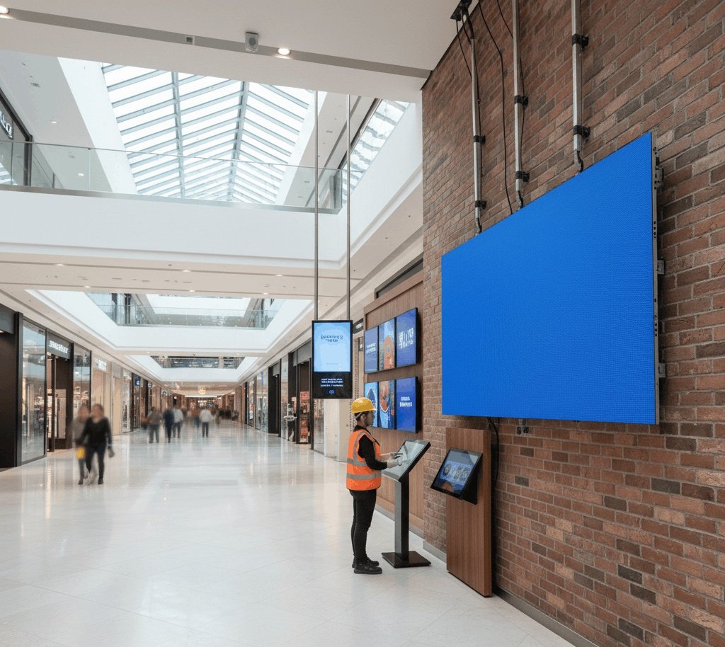 In one mall project, we installed several wall-mounted and free-standing screens. Initially, some displays were flickering because the power supply was undersized. After adjusting the power and re-mounting the brackets, all displays worked perfectly.