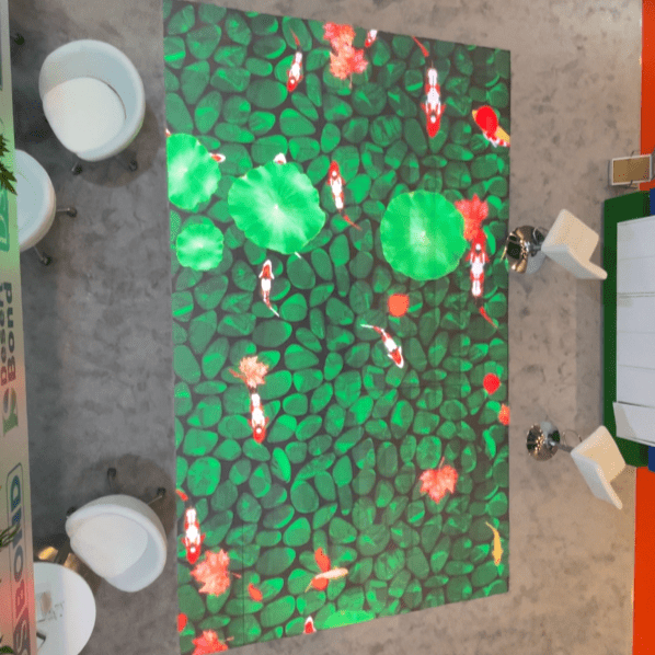 Durable, interactive floor mounted screen for dynamic advertising and events.